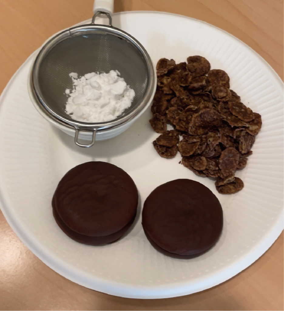 1.基本の材料はたったこれだけ!ただ、チョコパイの種類によっては水分が少ない場合があるので、追加で牛乳を用意しておくと◎