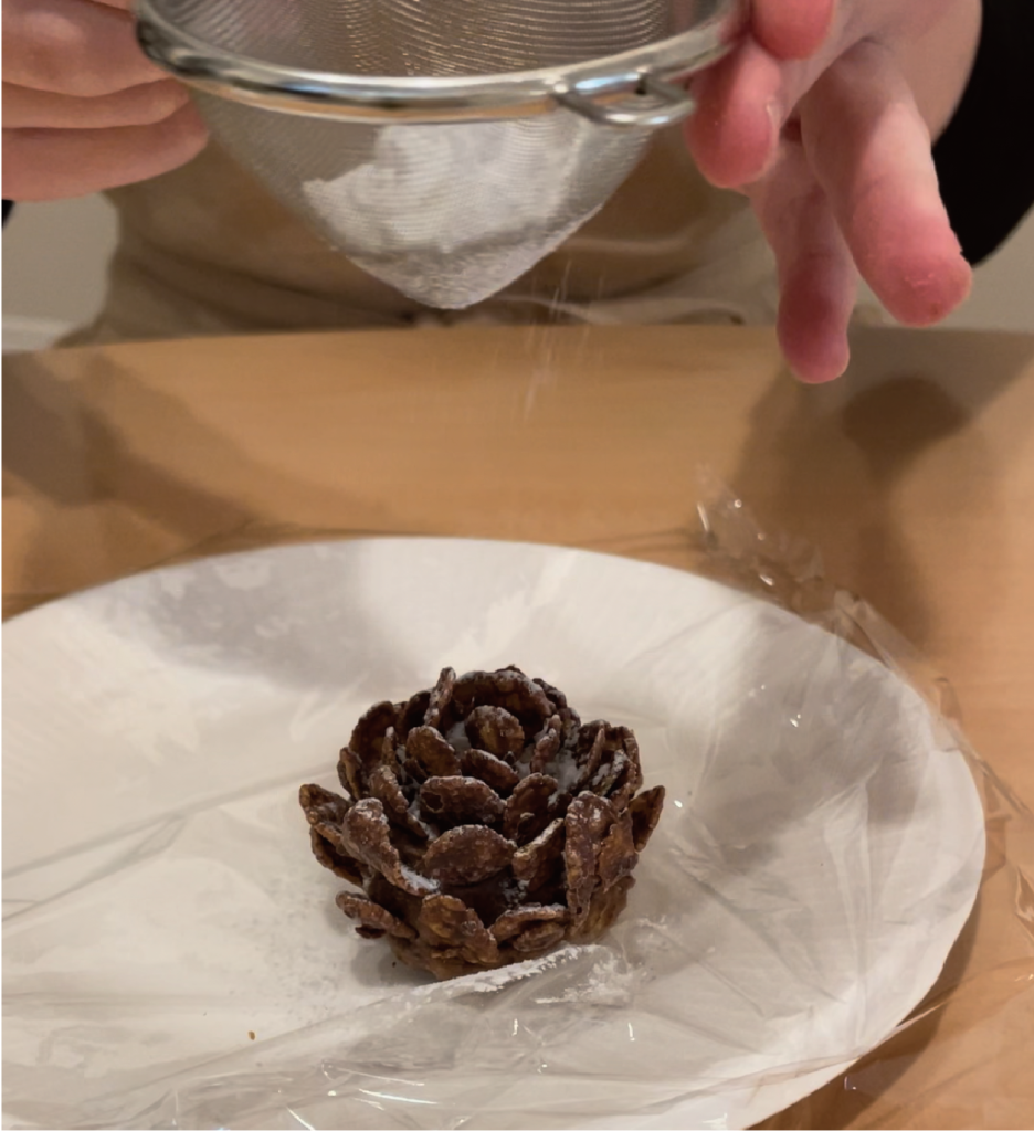 7.仕上げに粉砂糖を振りかけると、雪が降り積もった様子が表現できて可愛く仕上がりますよ♪